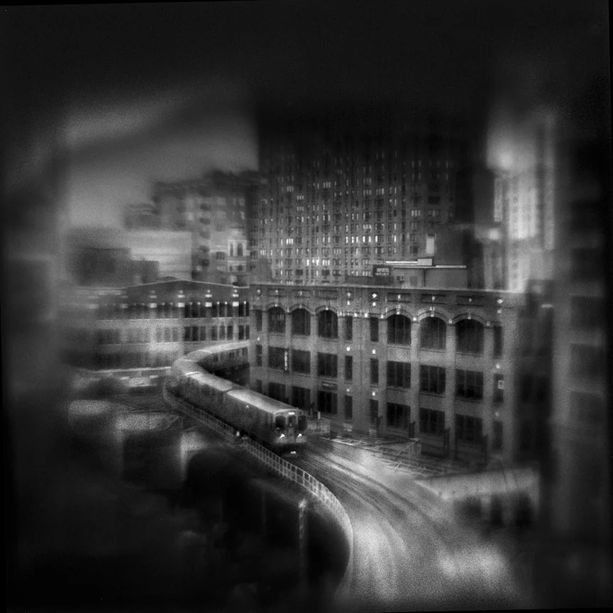 With this body of work as with former series, I captured these visions entirely in-camera using a collection of hand-made film cameras and lenses that are frequently unpredictable and technically challenging. The cameras are primarily made out of plastic, vintage camera parts and random household objects, and the single element lenses are molded out of plastic and rubber. Learning to overcome their extensive limitations has required me to rely on instinct and intuition – the same tools that are key when trusting the unseen.